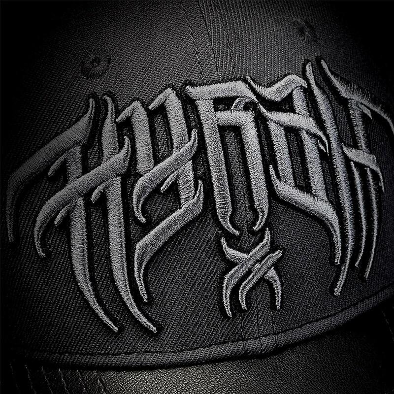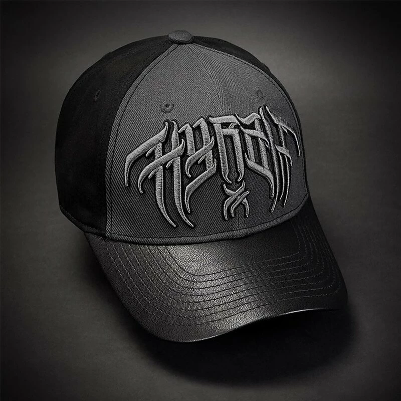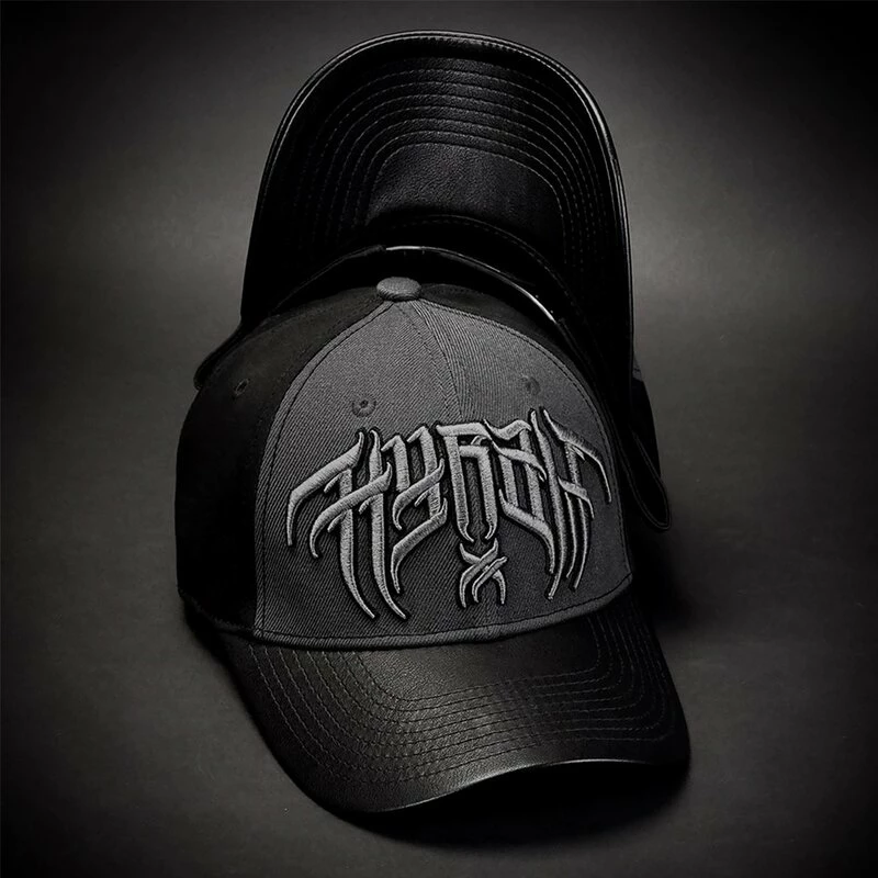 Coole Baseball Kappe mit gekrümmten Schirm von Hyraw. Die Cold Wave Cap hat eine dunkelgraue Front mit 3D besticktem Hyraw Schriftzug. Der Schirm ist aus schwarzem Kunstleder.