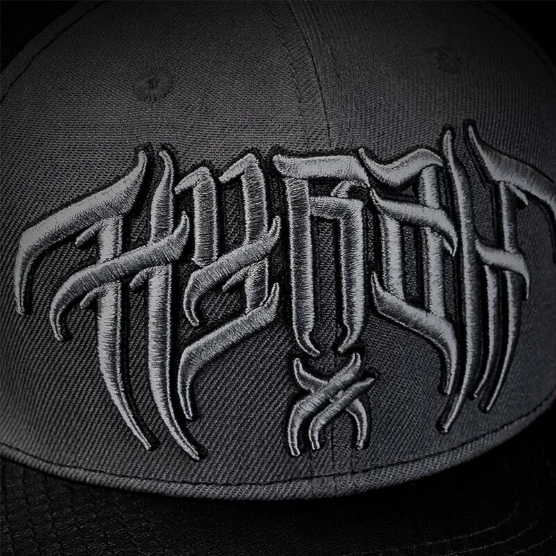 Coole Snapback Kappe von Hyraw. Die Cold Wave Cap hat eine dunkelgraue Front mit 3D besticktem Hyraw Schriftzug. Der Schirm ist aus schwarzem Kunstleder.