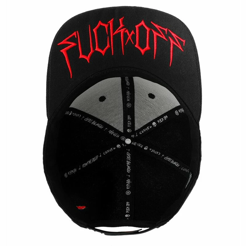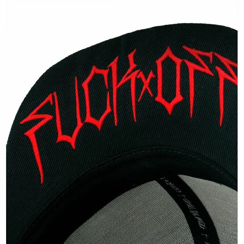 Coole Snapback Kappe von Hyraw. Die Hostile Red Cap hat eine 3D Hyraw Stickerei an der Vorderseite, und einen “FUCK OFF” Schriftzug an der Unterseite des Schirms.