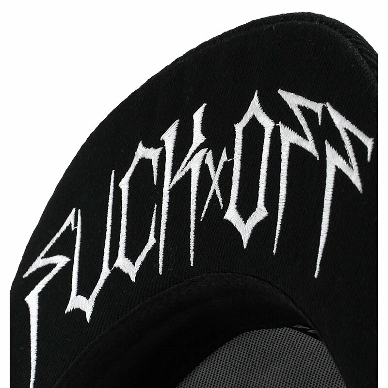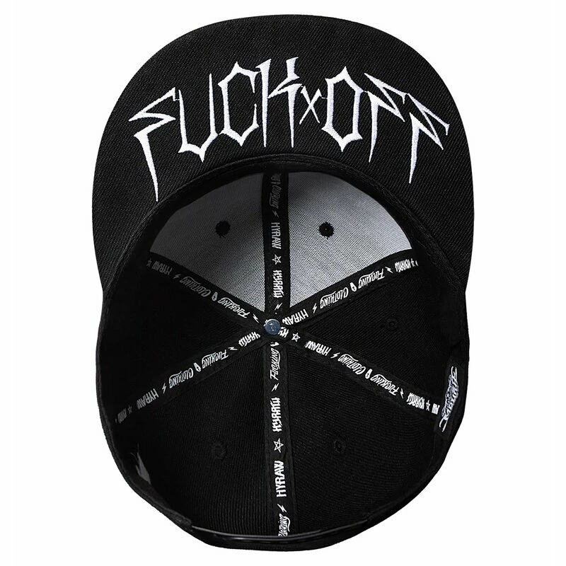 Coole Snapback Kappe von Hyraw. Die Hostile White Cap hat eine 3D Hyraw Stickerei an der Vorderseite, und einen “FUCK OFF” Schriftzug an der Unterseite des Schirms.