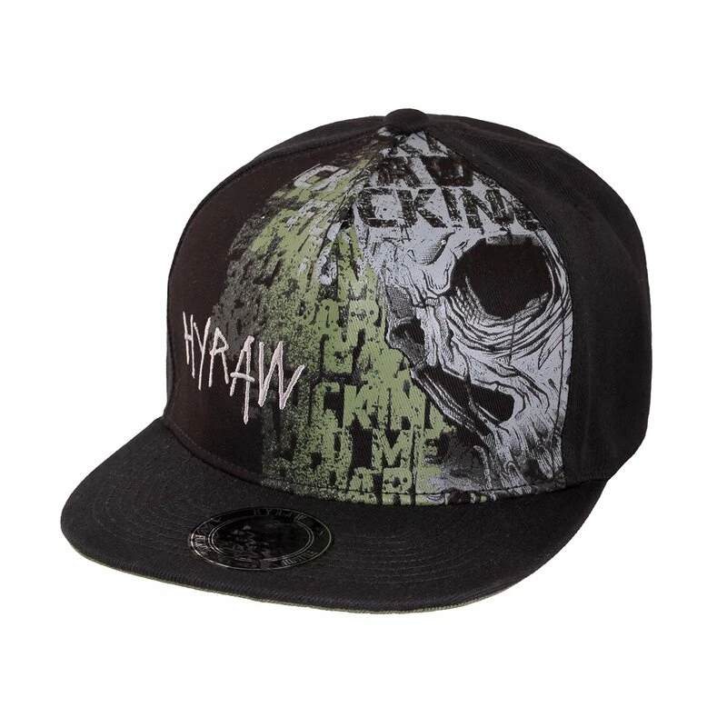 Coole Snapback Kappe von Hyraw. Die Land Cap hat einen Graffiti Schädel Print und einen bestickten Hyraw Schriftzug an der Vorderseite.
