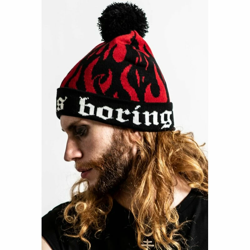 Die Kälte, sie ist nun ein Teil von mir. Killstars Boring Beanie hat einen “Hell Was Boring” Schriftzug und rote Flammen. Er ist aus kuschelweicher Kunstwolle und hat einen extra großen Bommel auf der Krone.