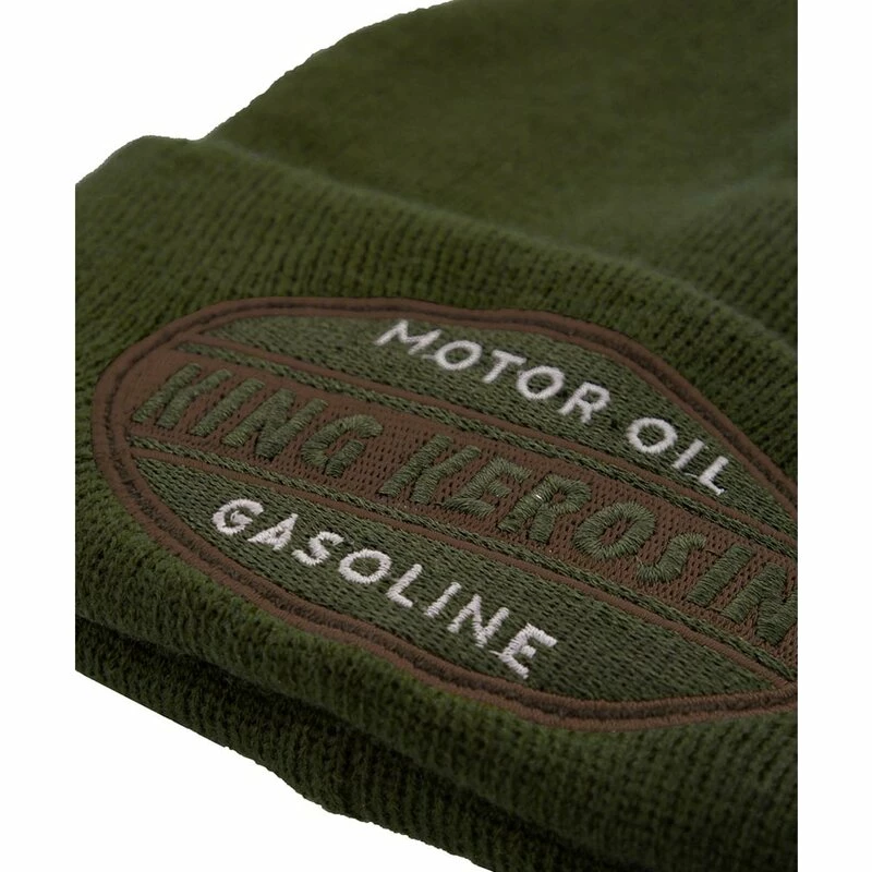 Weiche Wintermütze mit Vintage Flair von King Kerosin. Die Motor Oil Mütze hat ein besticktes Patch an der Vorderseite.