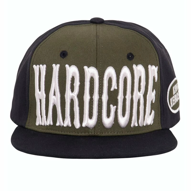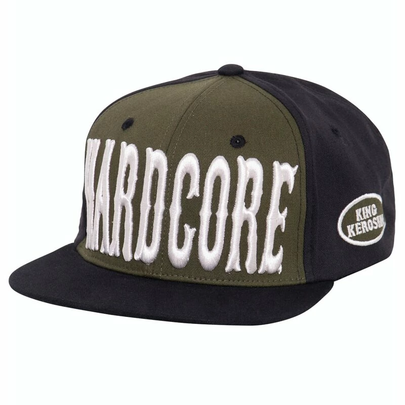 Rockabilly Flex Kappe von Vintage Topmarke King Kerosin. Die Hardcore Cap hat eine “Hardcore” Stickereian der Vorderseite, und einen “Assi” Schriftzug auf der Unterseite des Schirms.
