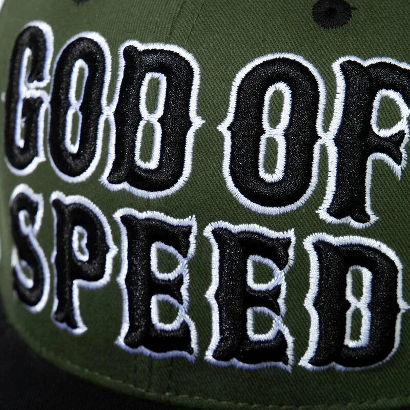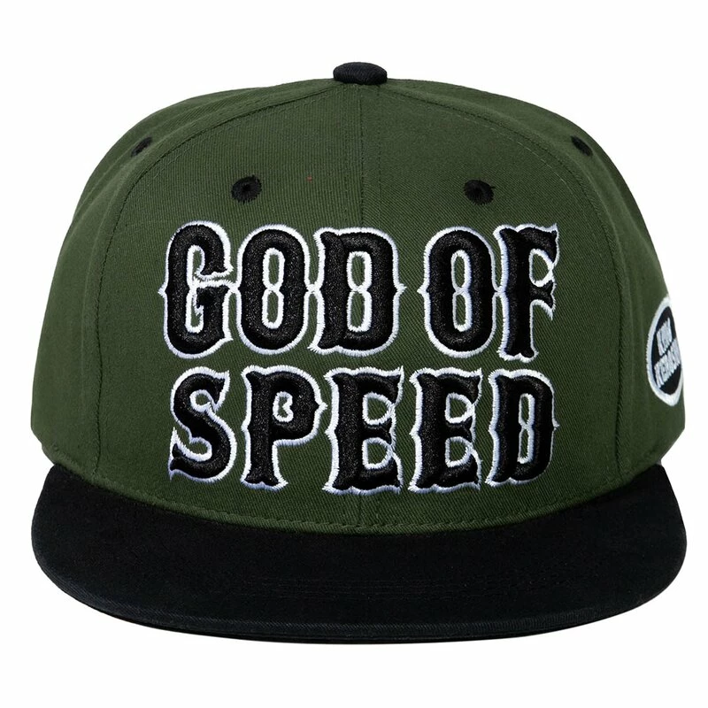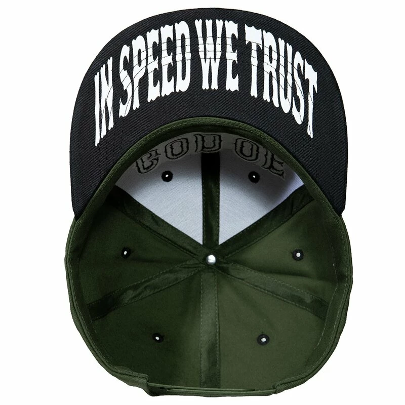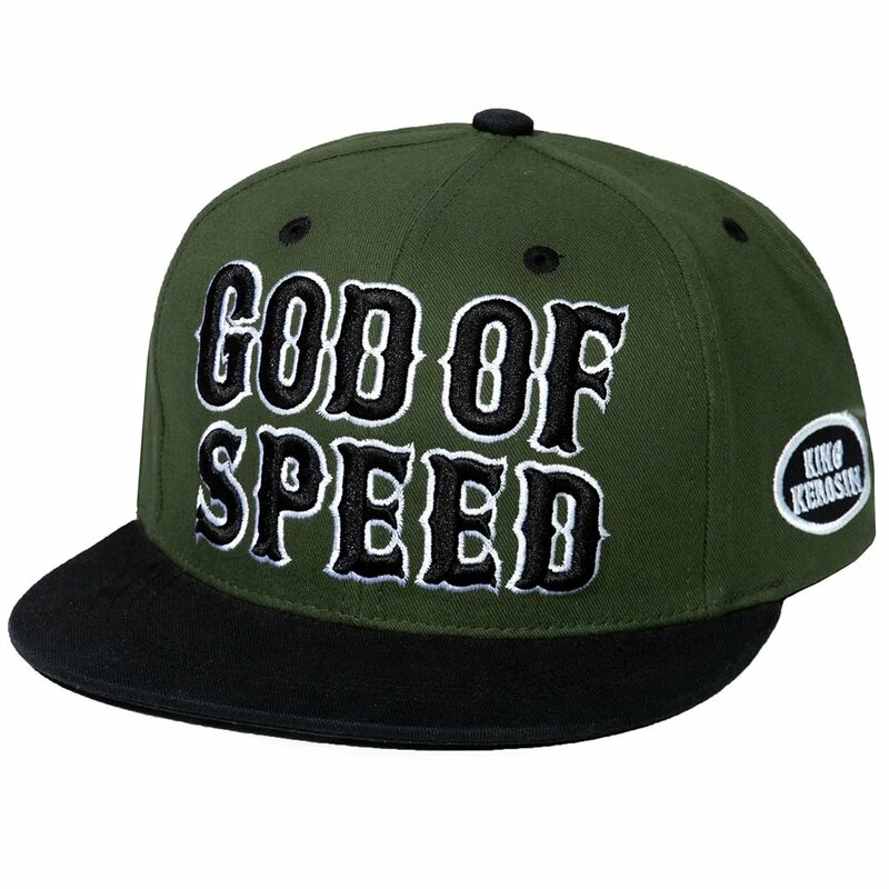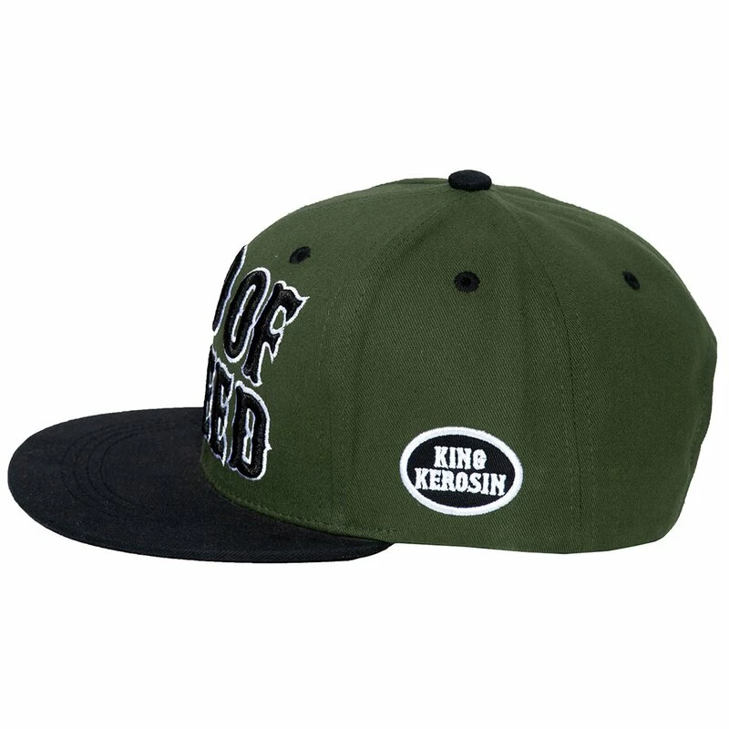 Coole Kappe mit Biker Flair von King Kerosin. Die God Of Speed Kappe hat eine “God Of Speed” Stickerei an der Vorderseite. Auf der Unterseite des Schirms befindet sich ein “In Speed We Trust” Print. Ein kleines King Kerosin Logo ist an der Seite bestickt.