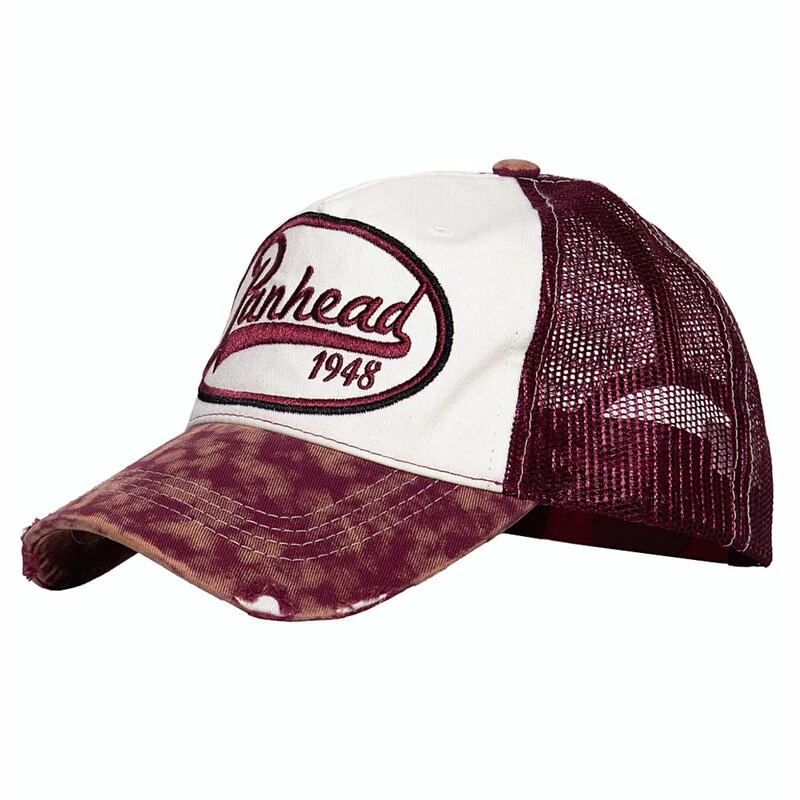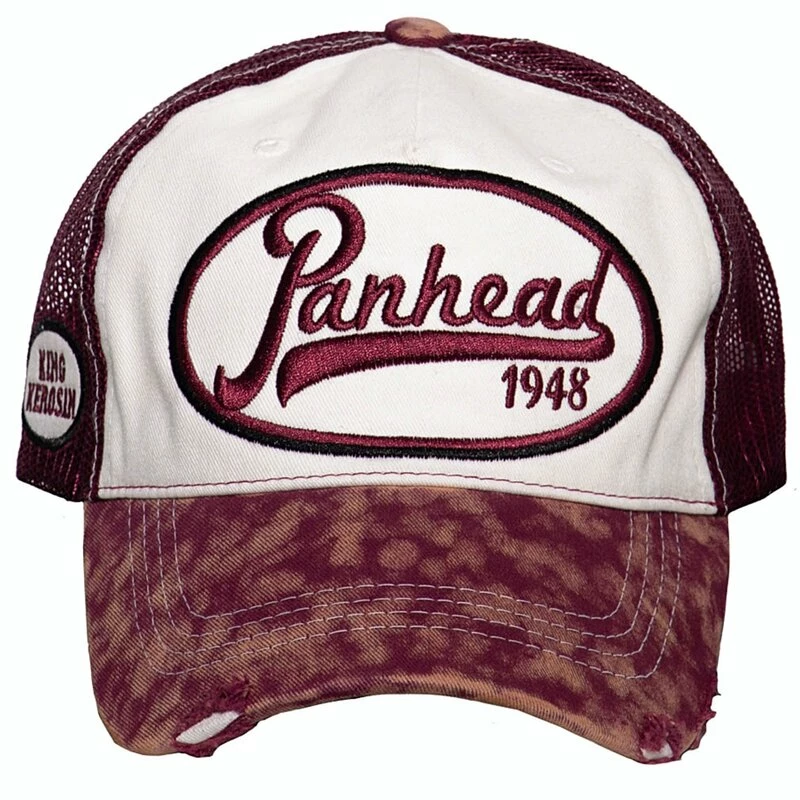 Rockabilly Trucker Kappe von Vintage Topmarke King Kerosin. Die Panhead Kappe hat einen bestickten Patch an der Vorderseite.