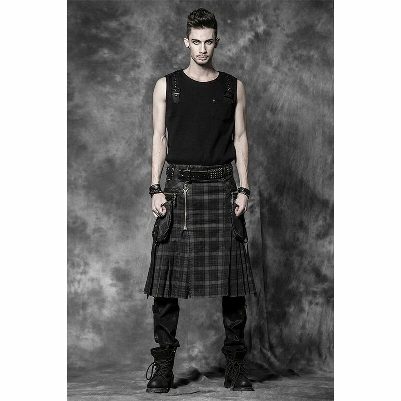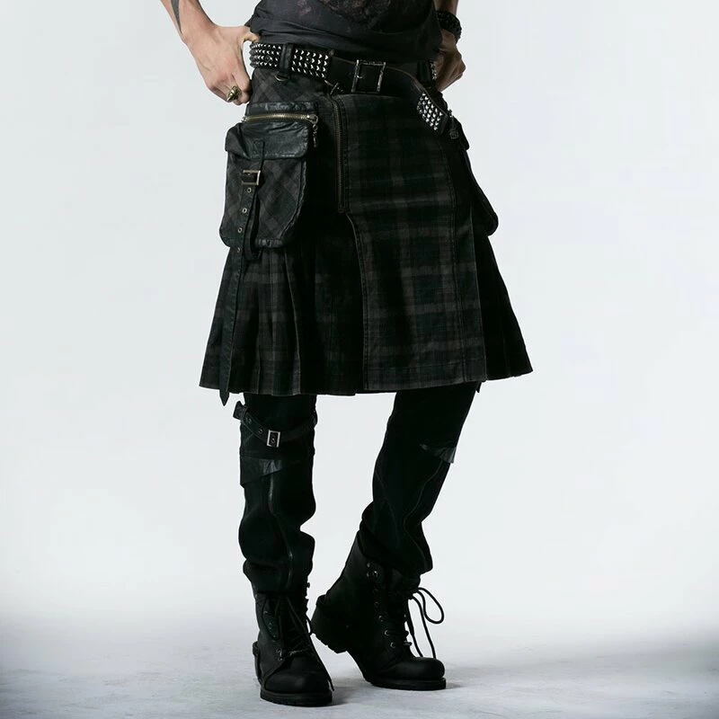 Features: Punk Rave Denim Kilt – Berserk Tartan