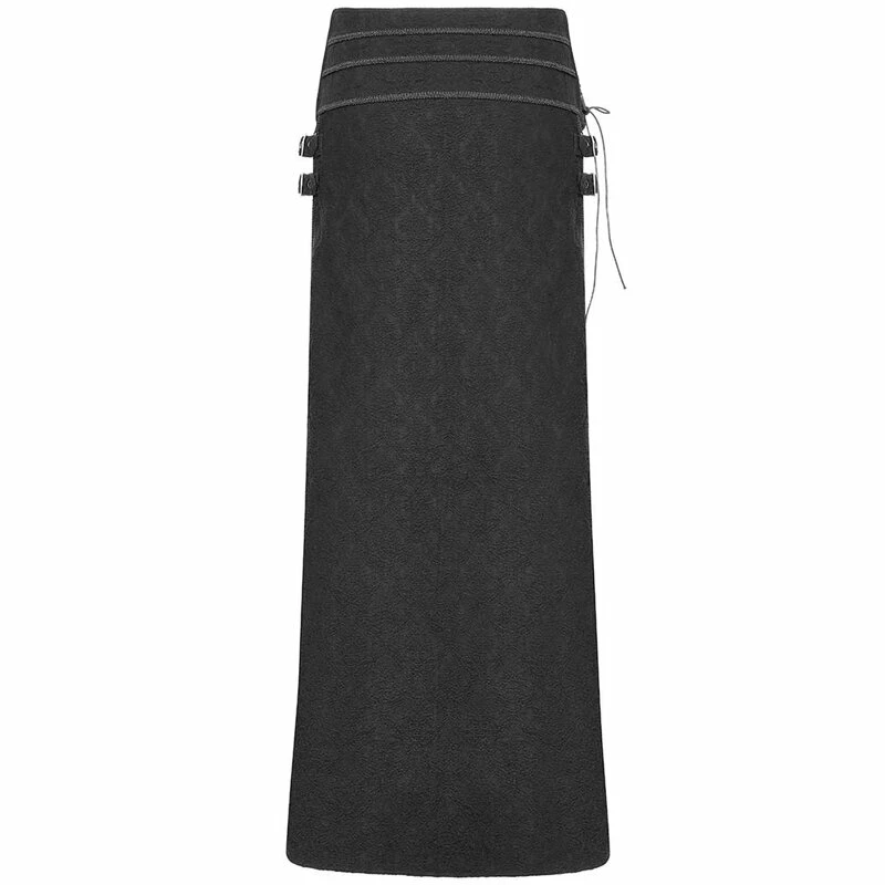 Hochwertiger Gothic Kilt von Punk Rave. Der Asmodey Kilt ist aus einer leichtgewichtigen Baumwollmischung mit einem dezenten floralen Muster. Auf der Vorderseite befindet sich eine Stickerei. Die Bordüren sind auch mit einem schlichten Muster bestickt. Die Vorderseite und beide Seiten sind bis zur Hüfte aufgeschlitzt. An beiden Seiten befinden sich jeweils zwei Schnallen. Ein Reißverschluss befindet sich an der rechten Seite. An der linken Seite befindet sich eine Schnürung, mit welcher die Weite reguliert werden kann.