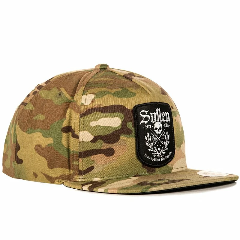 Basecap von Sullen Art Collective. Die Bound Mütze hat ein Logo Patch auf der Vorderseite, und einen Logo Print auf der Unterseite des Schirms. Sie hat eine Mutlticam Camouflage Muster.